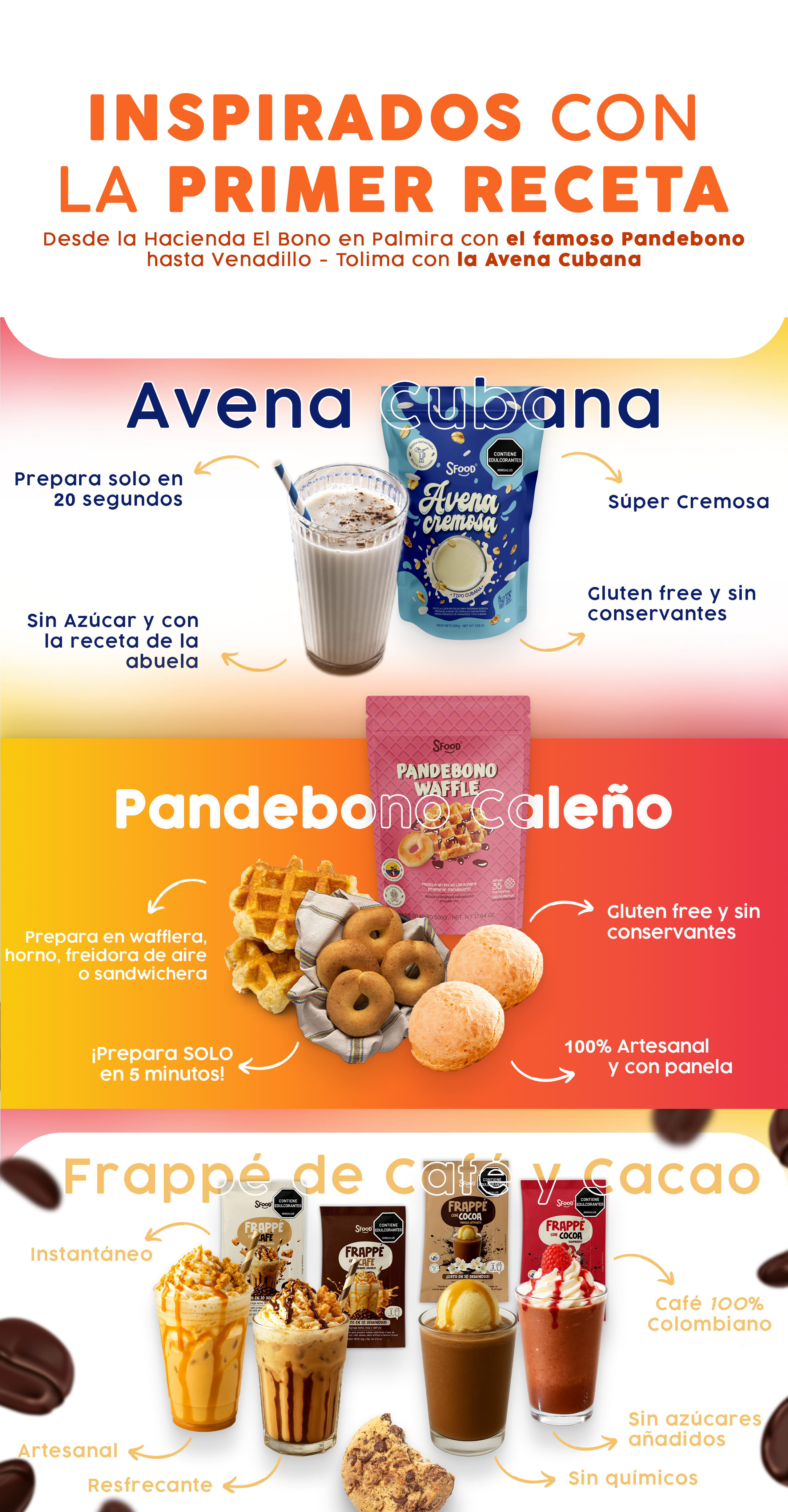 Desde la cremosidad de nuestra Avena Cubana, pasando por la innovación del Pandebono Waffle, hasta llegar a la indulgencia funcional de los nuevos Frappes de Cacao y Café, cada creación nace de una idea simple: transformar la rutina en un momento de placer y bienestar.